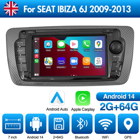 Regular price £132.26Unit price /UnavailableIn stock7'' Apple Carplay Android 14 Radio Stereo 2+64G — SEAT IBIZA 6J 2009-2013