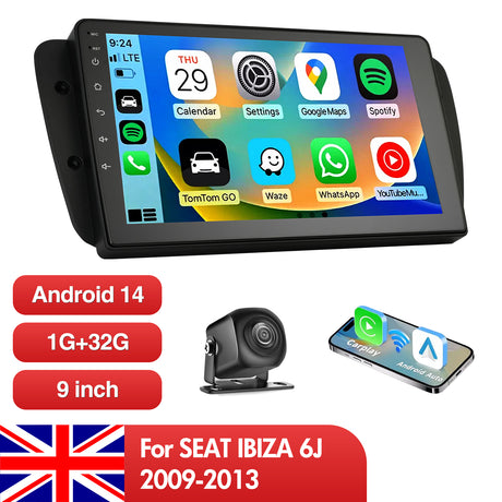 Regular price £107.47Unit price /UnavailableIn stock9'' Apple Carplay Android 14 Radio Stereo 2+32GB — SEAT IBIZA 6J 2009-2013