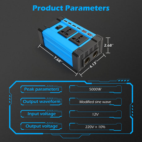 - 5000W 12V to 220V Car Power Inverter with 2 AC & USB Ports