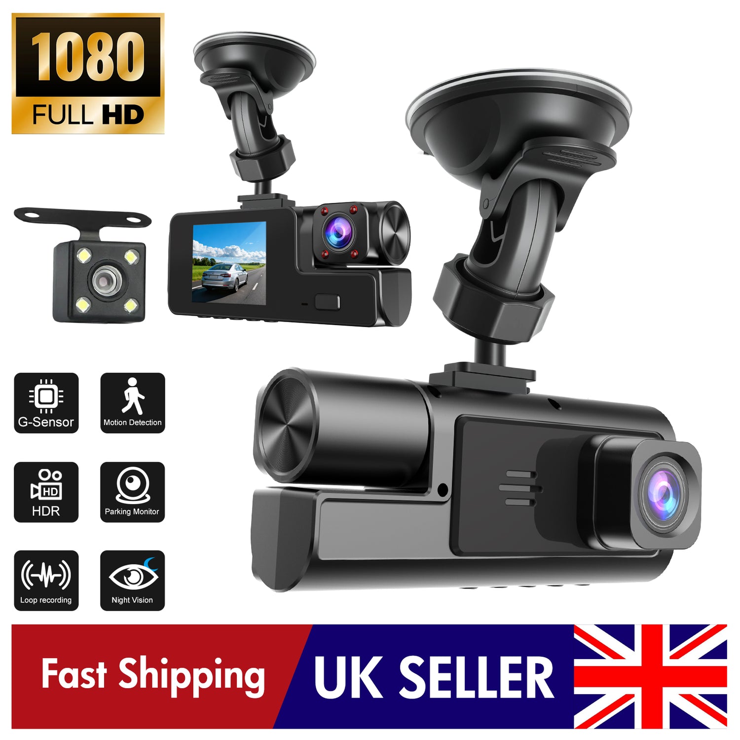 Capture every angle on UK roads with this powerful 3-channel 1080P dash cam. Record simultaneously in Full HD from front (140° wide angle), cabin interior (120° for passengers/kids/ride-shares), and rear (110° waterproof camera). HDR smart night vision with F2.0 aperture and infrared ensures clear footage in low light, tunnels, or backlight. G-sensor locks crash clips, loop recording overwrites old files, and motion detection saves parking footage. Easy suction-cup mount, rotatable screen, built-in mic (toggle for privacy), and supports up to 64GB TF card (not included). Ideal for accident evidence, theft prevention, or family safety – UK-friendly design with simple setup.