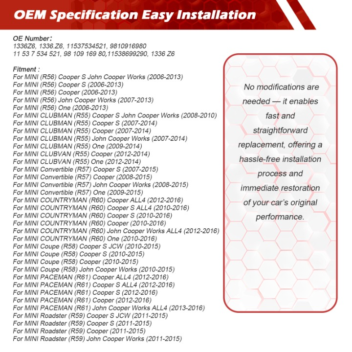 This premium Engine Coolant Thermostat Housing is a direct-fit replacement for MINI Cooper (R55-R61) models. Engineered with a high-quality wax element, it ensures precise temperature control to maintain the ideal operating range, improving fuel economy and reducing emissions. The durable construction features a stainless steel valve and corrosion-resistant rubber seal for extreme reliability in harsh conditions. The package includes the main body, sensor, and gasket for a straightforward installation. Restore your car's original performance with confidence, backed by our 7-year warranty and 365-day satisfaction guarantee.